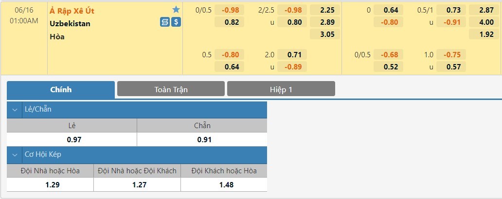 Tỷ lệ kèo cá cược bóng đá trực tuyến trận Ả Rập Xê Út vs Uzbekistan