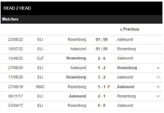 Thống kê đối đầu Aalesund vs Rosenborg