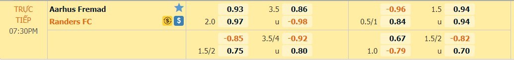 Tỷ lệ kèo cá cược bóng đá trực tuyến trận Aarhus Fremad vs Randers FC