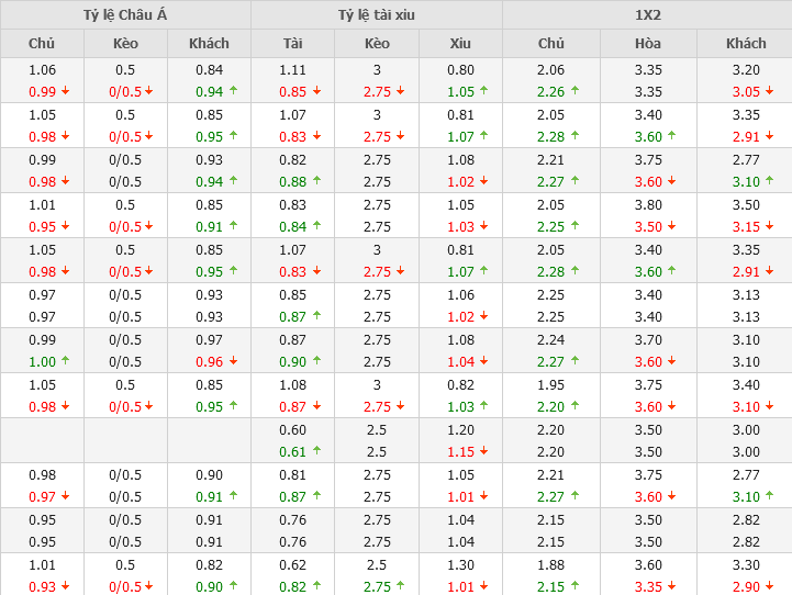 Kèo tài xỉu ban đầu được để ở mức 3 hòa nhưng đang có xu hướng giảm xuống 2,75. Dù vậy, với năng lực tấn công của cả 2 đội, việc vượt qua cột mốc 3 bàn là điều khả thi. Bất kỳ đội nào ghi được 2 bàn cũng sẽ lui về gia cố hàng thủ và tạo điều kiện để đối thủ tấn công. Thế trận như vậy rất dễ có tỉ số hòa và nhiều bàn thắng.