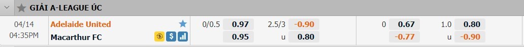 Tỷ lệ kèo cá cược bóng đá trận Adelaide United vs Macarthur