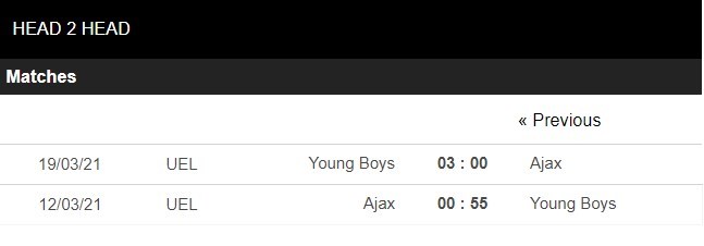 Thống kê đối đầu Ajax vs Young Boys
