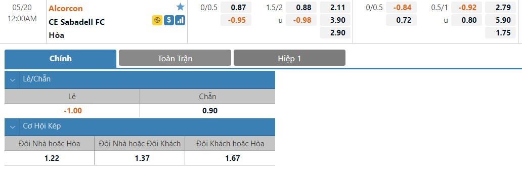 Tỷ lệ kèo cá cược bóng đá trận Alcorcon vs Sabadell