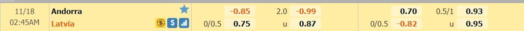 Tỷ lệ kèo cá cược bóng đá trận Andorra vs Latvia