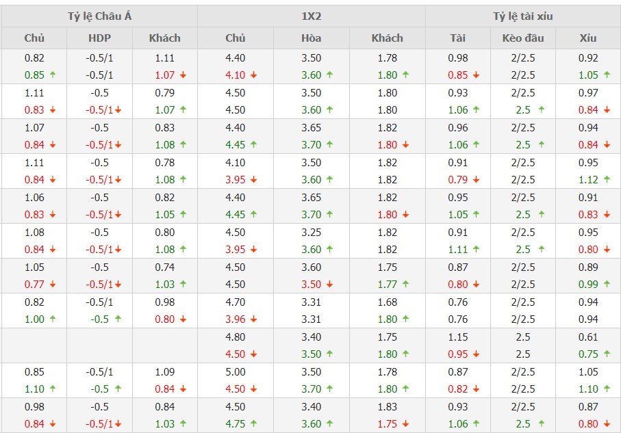 Chu kỳ lên xuống tỷ lệ kèo Áo vs Pháp