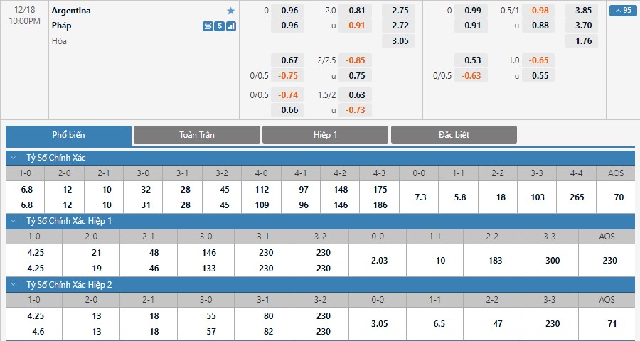 Xem tỷ lệ kèo cá cược bóng đá trực tuyến Argentina vs Pháp