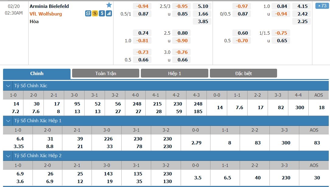 Theo chuyên gia phân tích thị trường cá cược Lucky88, tỷ lệ kèo chấp của trận đấu này phản ánh rõ ưu thế dành cho các cầu thủ đội khách. 5 lần đón tiếp Wolfsburg tại sân nhà, Arminia Bielefeld chỉ có 1 hòa và nhận tới 4 thất bại, trong đó có các kết quả đậm như 0-4 hay 0-3. Wolfsburg thì có hàng thủ cực kì chắc chắn khi ít khi nhận các bàn thua. Tỷ lệ Wolfsburg chấp -3/4 bàn sẽ là hợp lý nhất. Cần biết 5 lần gần nhất đón tiếp Wolfsburg tại sân nhà, Arminia Bielefeld không thể ghi được bất kì bàn thắng nào. 5 vòng đấu gần nhất, Arminia Bielefeld có 2 trận đấu giữ sạch lưới còn với Wolfsburg thì con số này là 5. Các cuộc đấu có sự góp mặt của Bầy Sói có trung bình chỉ 2,4 bàn mà thôi. 90 phút tới dự kiến sẽ là 1 thắng lợi nhẹ nhàng cho đội khách.