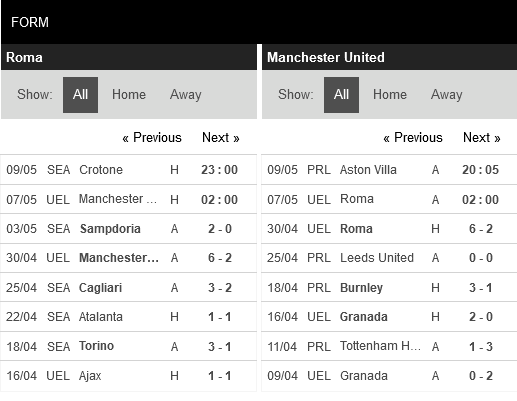Thống kê phong độ AS Roma vs Manchester United