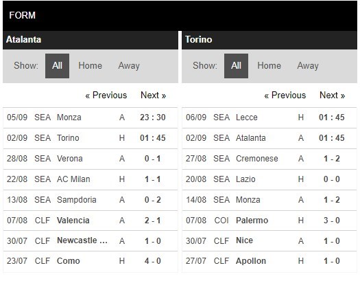 Phong độ của Atalanta trong giai đoạn vừa qua vẫn là không ổn chút nào khi mang về 4 trận thắng, 2 trận hòa và 4 trận thua ở 10 trận đấu gần đây nhất trên mọi đấu trường. Đoàn quân của HLV Gian Piero Gasperini vừa qua đã mang về cho mình thắng lợi với tỉ số tối thiểu 1-0 khi đối đầu với Verona và dù rằng đây chưa phải là màn trình diễn tốt nhưng quan trọng hơn cả là Atalanta đã có được 3 điểm trọn vẹn. Trong 5 trận đấu gần nhất hai đội bóng này chạm trán nhau trực tiếp, Atalanta đã có 5 trận đấu mang về được cho mình ít nhất là 1 bàn thắng trong hiệp đấu đầu tiên. Còn với Torino thì đội bóng này chỉ có 3 lần làm được điều tương tự. Người chơi nên tin tưởng vào đội chủ nhà.