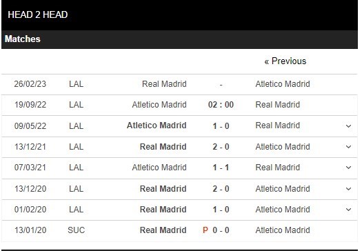 Thống kê đối đầu Atletico Madrid vs Real Madrid