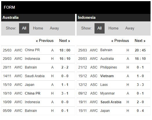 Thống kê phong độ Australia vs Indonesia
