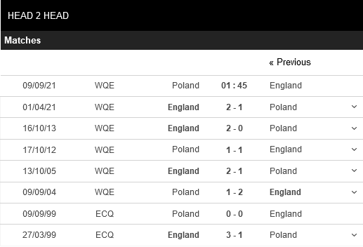 Thành tích sân nhà của Ba Lan ấn tượng nhưng Anh cũng có phong độ sân khách không tệ. Đoàn quân của Southgate đã có 12 trận bất bại trên sân khách. 4 chuyến làm khách của họ trong năm 2021 cũng đều có kết quả là chiến thắng.