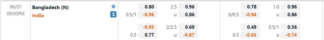 Tỷ lệ kèo cá cược bóng đá trận Bangladesh vs Ấn Độ