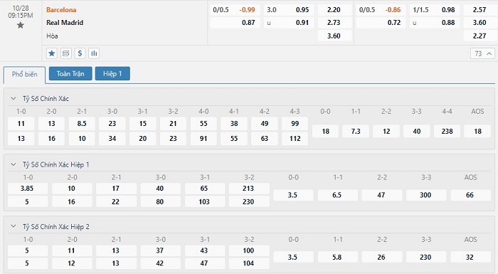 Xem tỷ lệ kèo cá cược bóng đá trực tuyến Barcelona vs Real Madrid