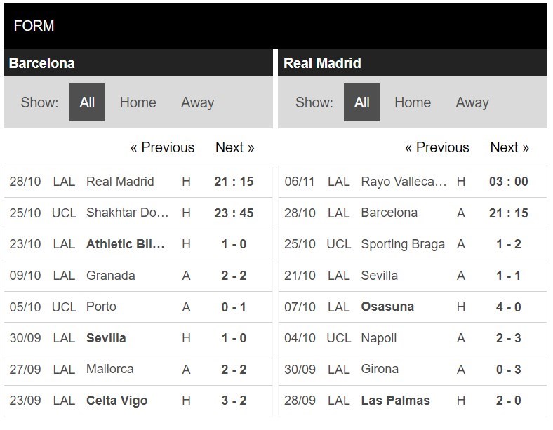 Trong khuôn khổ vòng 11 La Liga, tâm điểm chắc chắn sẽ là trận đấu El Clasico được diễn ra trên sân Estadio Olímpico. Trong trận đấu mà tính chất danh dự rất cao này, cả hai đội đương nhiên sẽ hướng tới việc mang về cho mình 3 điểm trọn vẹn.
