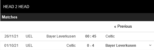Thống kê đối đầu Bayer Leverkusen vs Celtic