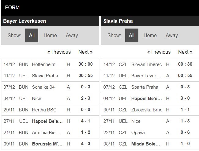 Thống kê phong độ Bayer Leverkusen vs Slavia Praha