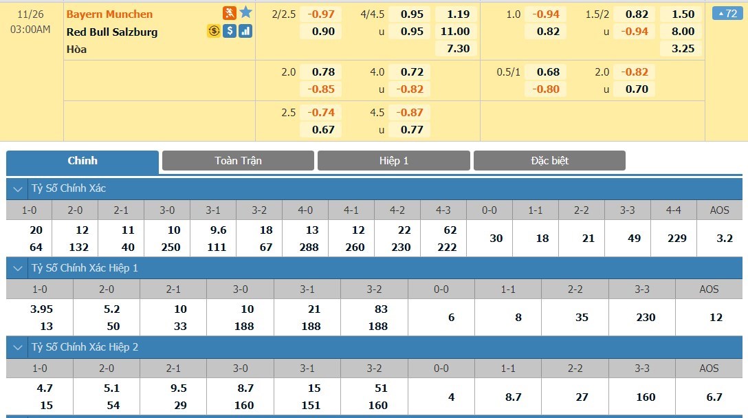 Tỷ lệ kèo cá cược bóng đá trận Bayern Munich vs Red Bull Salzburg