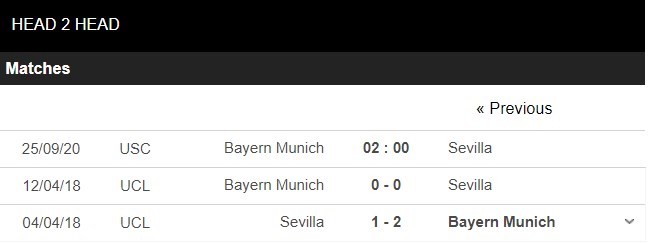 Thống kê đối đầu Bayern Munich vs Sevilla