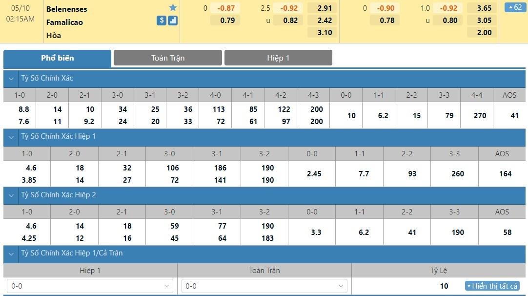 Tỷ lệ kèo cá cược bóng đá trận Belenenses vs Famalicao