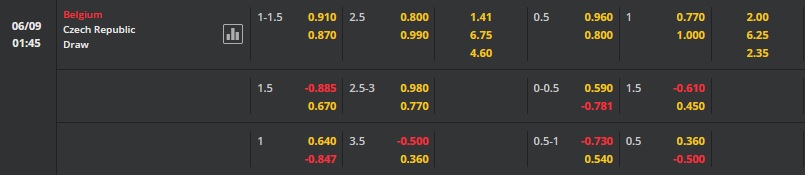 Xem tỉ lệ kèo cá cược bóng đá trực tuyến Bỉ vs Cộng hòa Séc