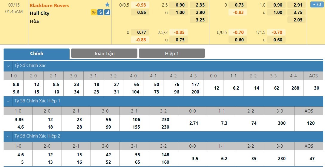 Thống kê cho thấy trong 4 lần gần nhất mà 2 đội có dịp đối đầu nhau ở giải hạng nhất, Hull City đều là bên phải nhận thất bại với tổng cách biệt tới 8-0. Xét về phong độ mùa này, màn trình diễn của Hull City cũng là rất tệ và điều này cũng không phải lạ khi họ mới chỉ trở lại Championship. Đối đầu với một cái tên có bản lĩnh và kinh nghiệm lớn hơn như Blackburn thì cửa thắng của Hull City tất nhiên bị thu bé hơn rất nhiều.Tại kèo châu Á, giới chủ kèo hiện tại cũng nghiêng về cửa thắng cho chủ nhà Blackburn và để mức kèo không quá lớn là chấp 0.25 bàn cho cả trận. Nhìn vào mức kèo này, có thể thấy chọn cửa chủ nhà chắc chắn là ưu tiên hàng đầu mà các nhà đầu tư nên nhắm đến.
