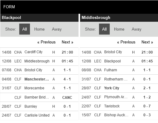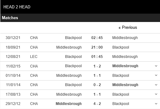 4 trận đấu gần nhất, Blackpool không thắng trong hiệp 1. Họ có 2 trận thua và 2 trận hòa. Middlesbrough thì khá hơn với 4 chiến thắng trong 7 trận đã đấu vào mùa hè năm nay.