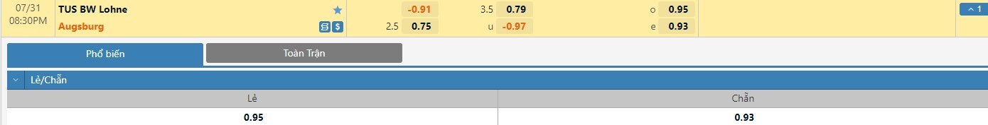 Theo chuyên gia Lucky88, Blau-Weiss Lohne nhận được tỷ lệ chấp +2 1/2 trái trận này. Mốc chấp cho thấy chênh lệch lớn về mặt trình độ giữa đôi bên. Augsburg không có được những sự chuẩn bị tốt trong loạt trận giao hữu trước thềm mùa giải mới và đây được xem là cơ hội phù hợp để họ tìm niềm vui chiến thắng.