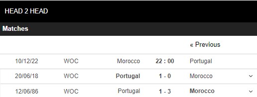 Thống kê đối đầu Bồ Đào Nha vs Ma Rốc