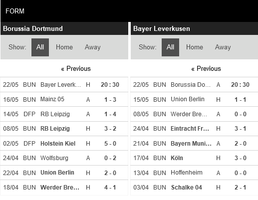 Thống kê phong độ Borussia Dortmund vs Bayer Leverkusen