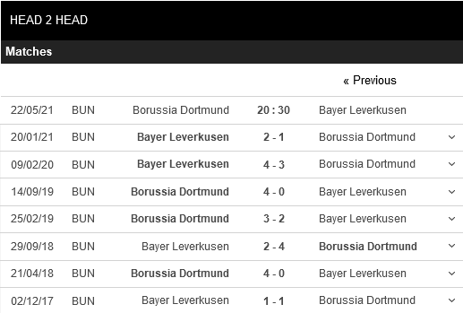 Thống kê đối đầu Borussia Dortmund vs Bayer Leverkusen