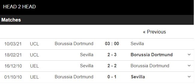 Thống kê đối đầu Borussia Dortmund vs Sevilla