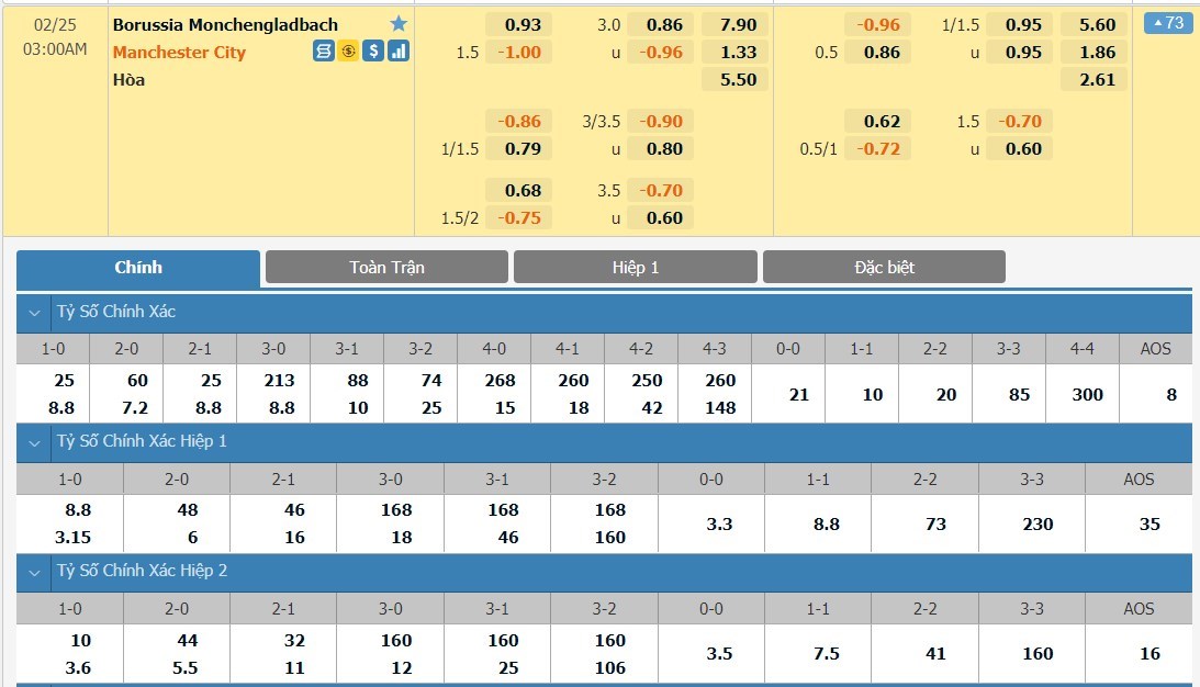 Xem tỷ lệ kèo cá cược bóng đá trực tuyến Borussia M.Gladbach vs Manchester City
