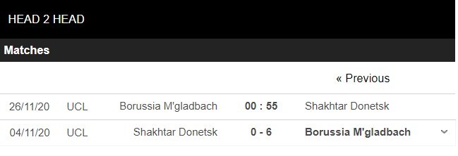 Thống kê đối đầu Borussia M’gladbach vs Shakhtar Donetsk