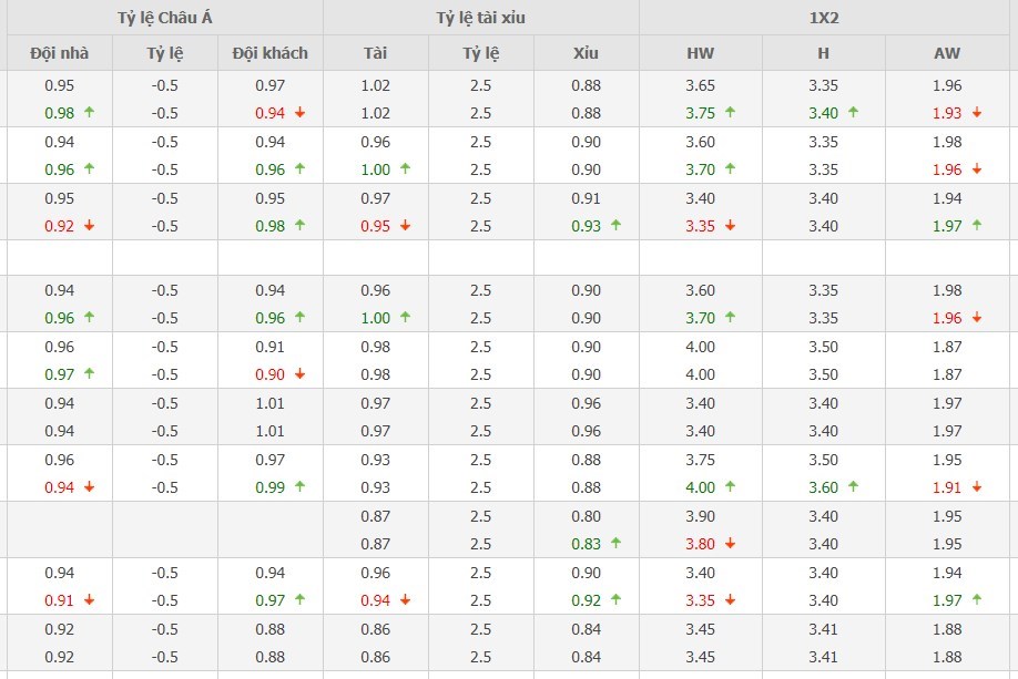 Chu kỳ lên xuống tỷ lệ kèo Bournemouth vs Southampton