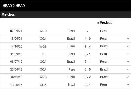 Chu kỳ lên xuống tỉ lệ kèo Brazil vs Peru