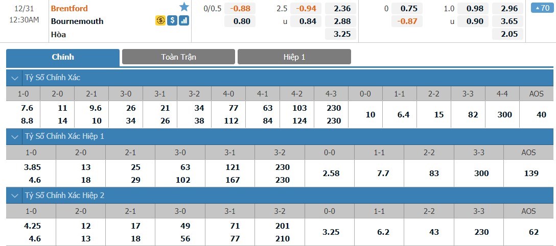 Cả 2 đội bóng đều có cách nhập cuộc khá an toàn ở nửa đầu mỗi trận mùa giải năm nay. Brentford có tới 11 lần kết thúc 45 phút đầu tiên với kết quả hoà trong khi con số này phía Bournemouth là 9. Khả năng cao, ta sẽ có cho mình 1 kết quả cân bằng khi bước vào giờ nghỉ trận tới.