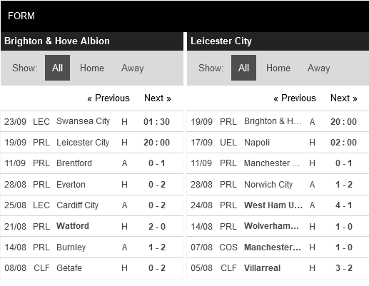 Thống kê phong độ Brighton vs Leicester City