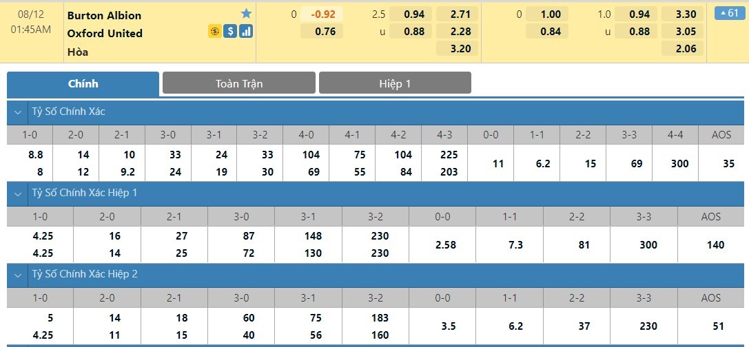 Tỷ lệ kèo cá cược bóng đá trực tuyến trận Burton vs Oxford