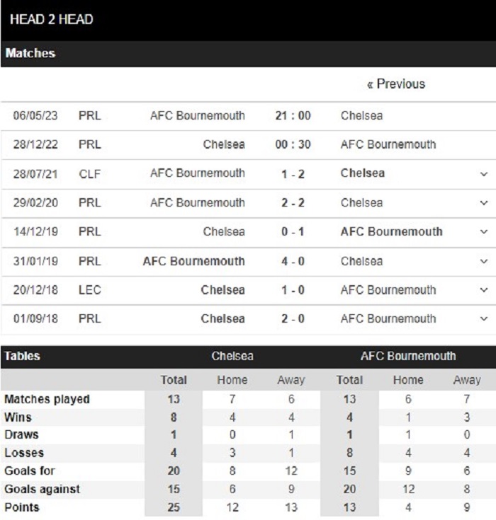 Chelsea đang rất cần một chiến thắng để chấm dứt chuỗi trận nghèo nàn của mình trong quãng thời gian vừa qua. Gặp đối thủ ưa thích Bournemouth chính là cơ hội tuyệt vời mà thầy trò HLV Graham Potter nên nắm bắt. Tính trong 10 cuộc đọ sức gần nhất giữa hai đội thì The Blues chiếm ưu thế với 6 chiến thắng, 1 trận hòa và chỉ 3 lần để thua Bournemouth.