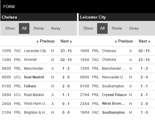 Thống kê phong độ Chelsea vs Leicester City