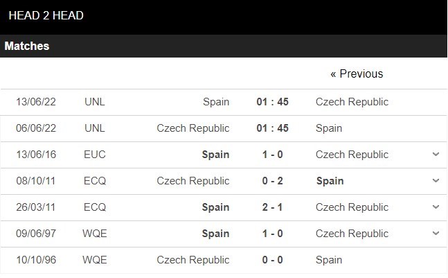 Thống kê đối đầu Cộng hòa Séc vs Tây Ban Nha