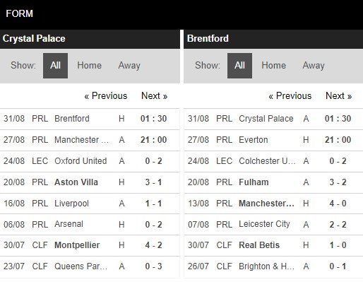 Crystal Palace chưa từng giành chiến thắng trong 5 lần gần nhất chạm trán Brentford. Do vậy mà ở lần gặp gỡ sắp tới, đội chủ sân Selhurst Park rất muốn chấm dứt thành tích nghèo nàn đó. Họ đang có những cơ sở để hiện thực hóa mục tiêu đó. Crystal Palace mới chỉ thua 1 trận sau 4 lượt trận tại giải Ngoại hạng Anh mùa này.