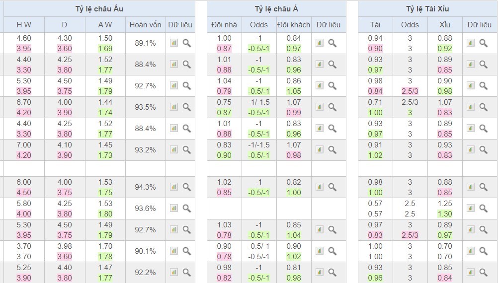 Chu kỳ lên xuống tỷ lệ kèo CSKA Sofia vs AS Roma