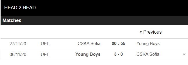 Thống kê đối đầu CSKA Sofia vs Young Boys