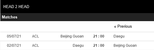 Thống kê đối đầu Daegu FC vs Beijing Guoan
