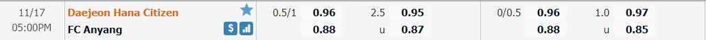 Tỷ lệ kèo cá cược bóng đá trận Daejeon Hana Citizen vs FC Anyang