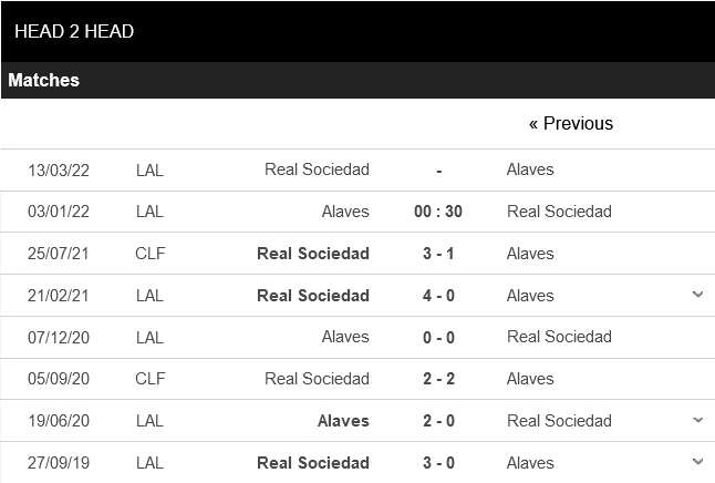 Thống kê đối đầu Deportivo Alaves vs Real Sociedad