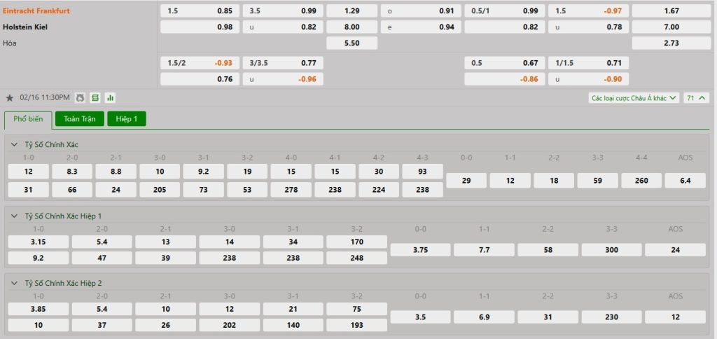 Tỷ lệ kèo cá cược bóng đá trận Eintracht Frankfurt vs Holstein Kiel