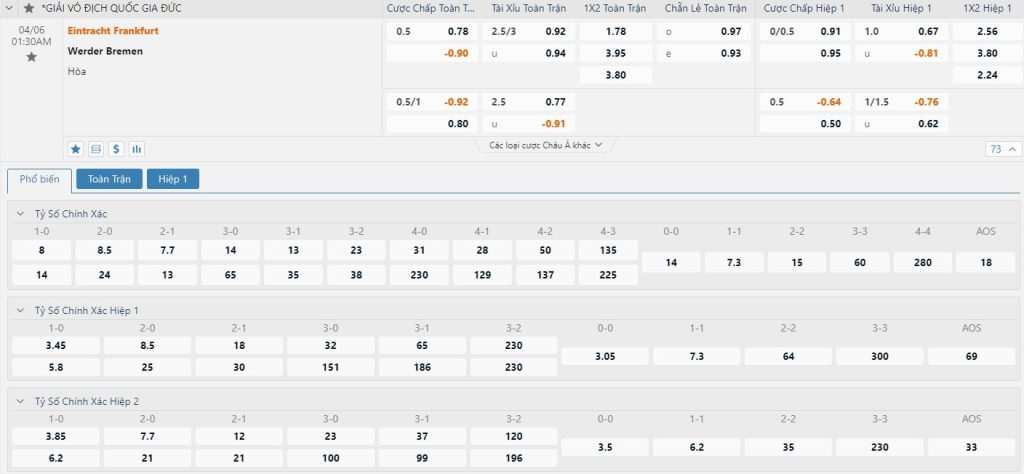 Chu kỳ lên xuống tỷ lệ kèo Eintracht Frankfurt vs Werder Bremen